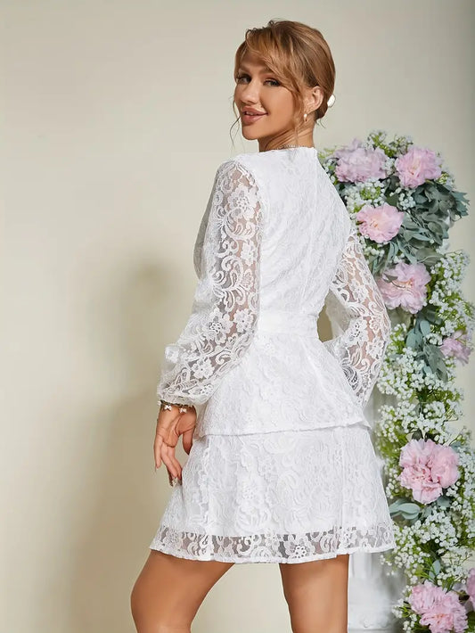 Women's Dress - Fitted Mini - V-Neck - Long Fluid Sleeves