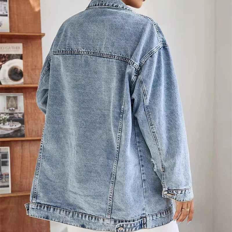Chaqueta de Mujer en Jean Rasgada - Elegancia Vintage con un Toque Moderno