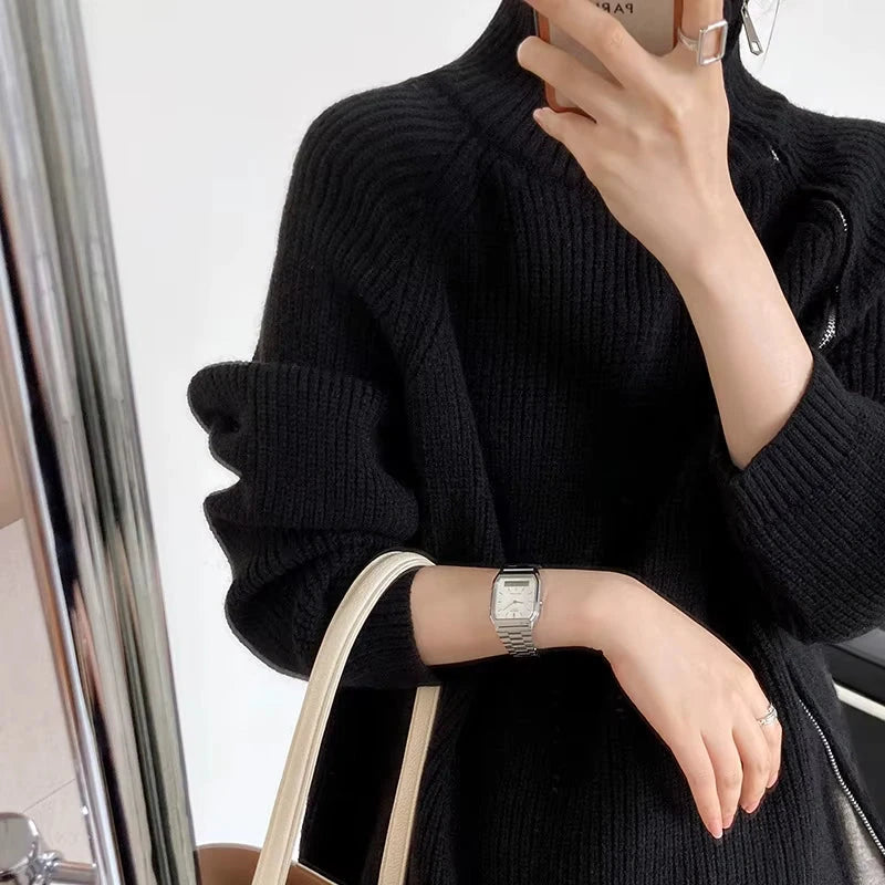 Suéter de cuello alto con cremallera para mujer – Elegancia y Confort Invernal