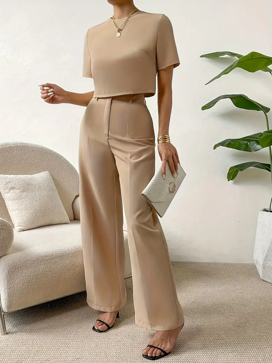Completo Donna – Top Corto Aderente & Pantalone Vita Alta Largo