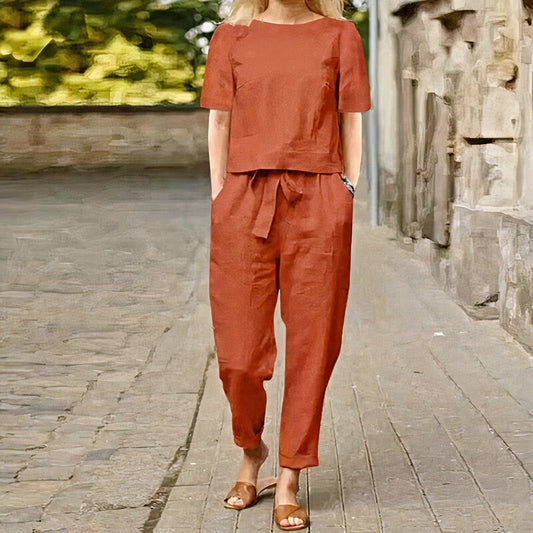 Léa elegante e traspirante completo in lino con camicetta e pantaloni