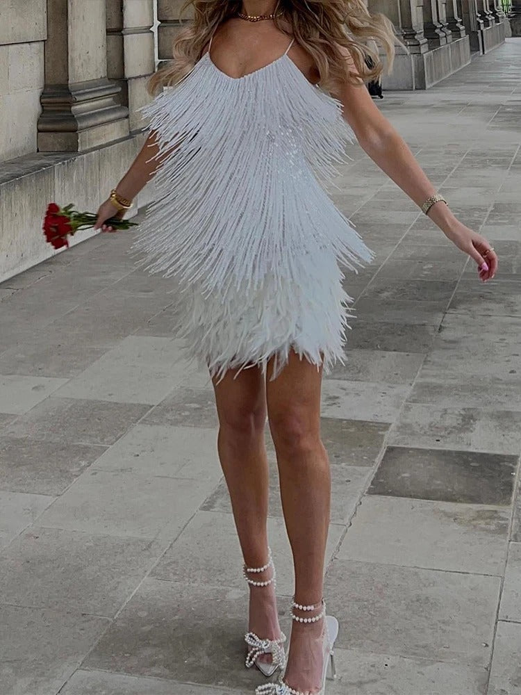 Sophie – Vestito Abbagliante e Confortevole con Paillettes e Dettagli in Piuma